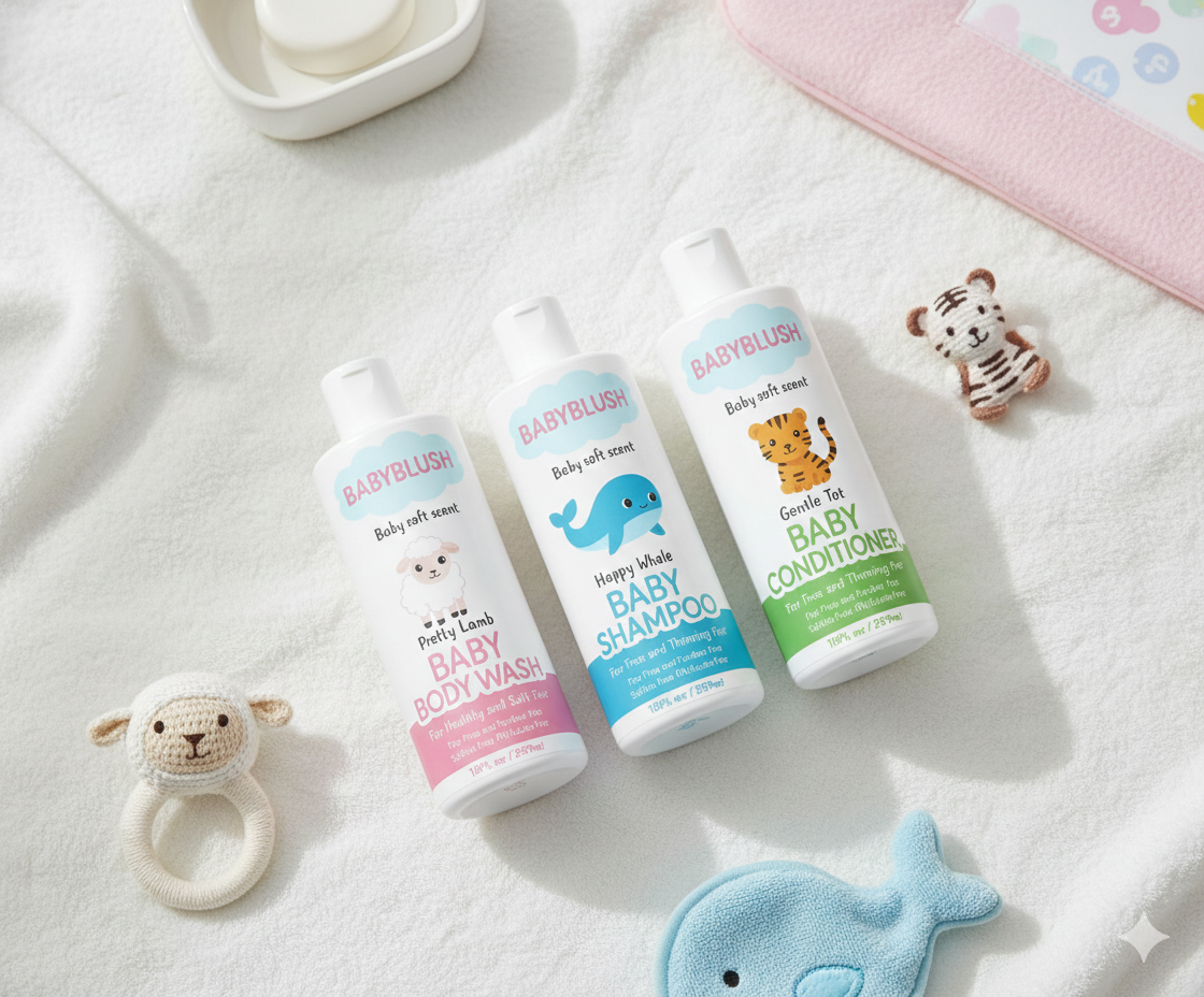 Our baby care range includes body wash, shampoo, and conditioner made with skin-friendly ingredients to provide gentle and nourishing care for your baby.